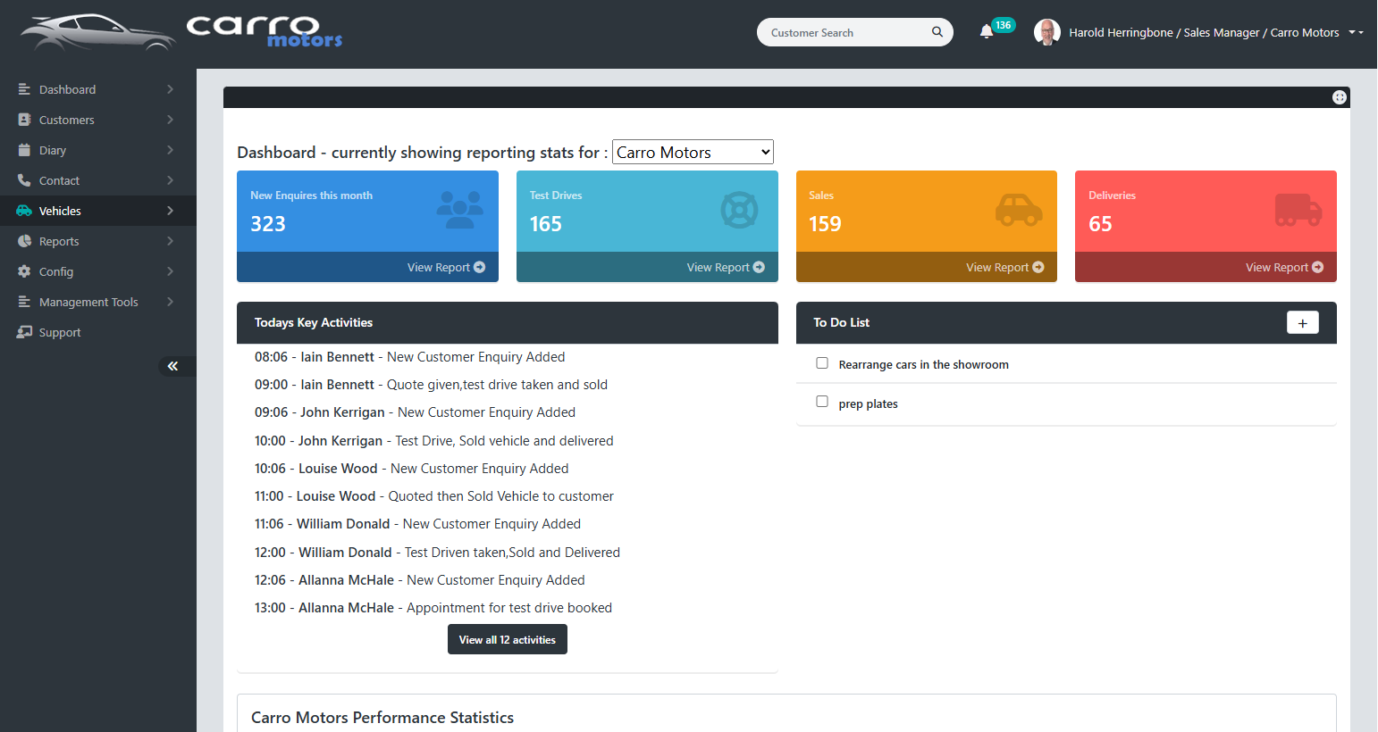 Carro's integrated diary ensures no follow-up, appointment, or delivery is forgotten. Sales teams are prompted automatically, while managers oversee activity in real time.
