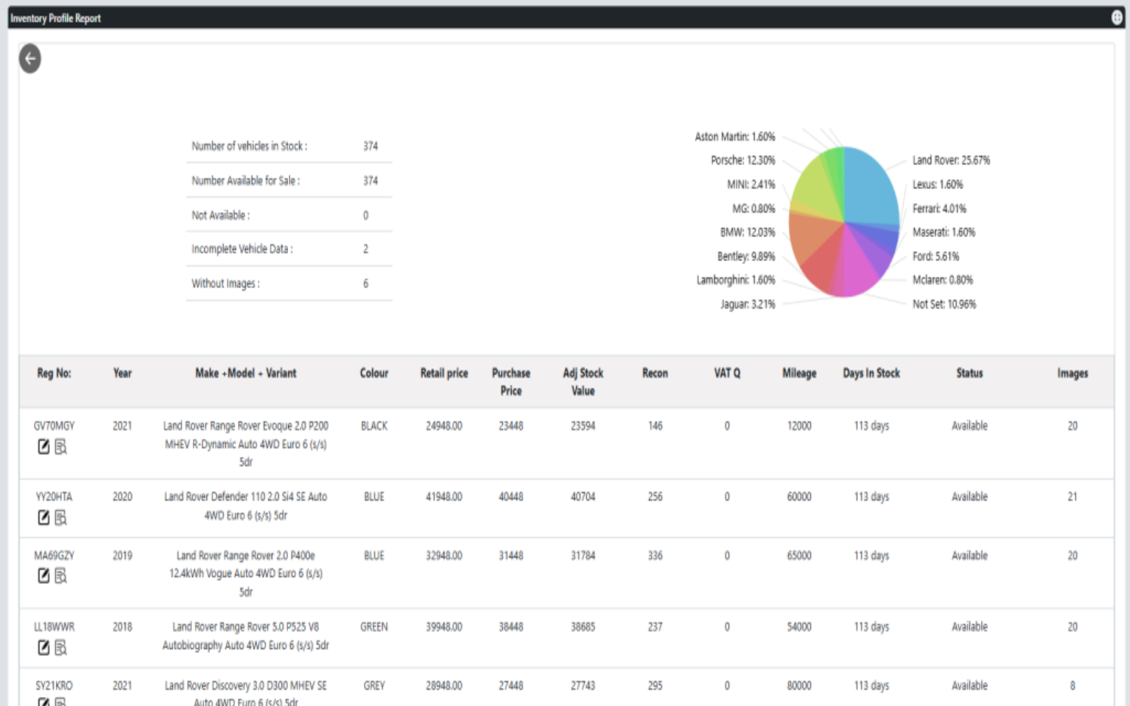 - Centralised stock list with photos and documents